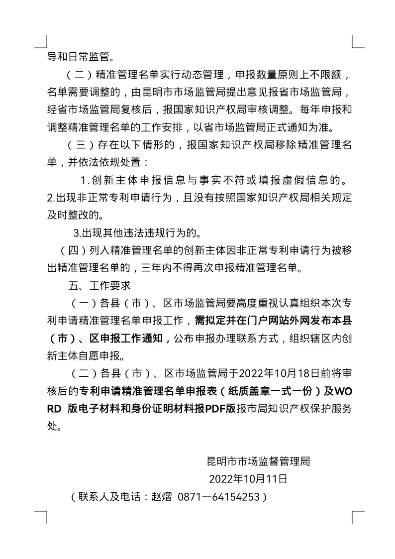 昆明市市場監(jiān)督管理局關(guān)于組織申報(bào)專利申請(qǐng)精準(zhǔn)管理名單的通知