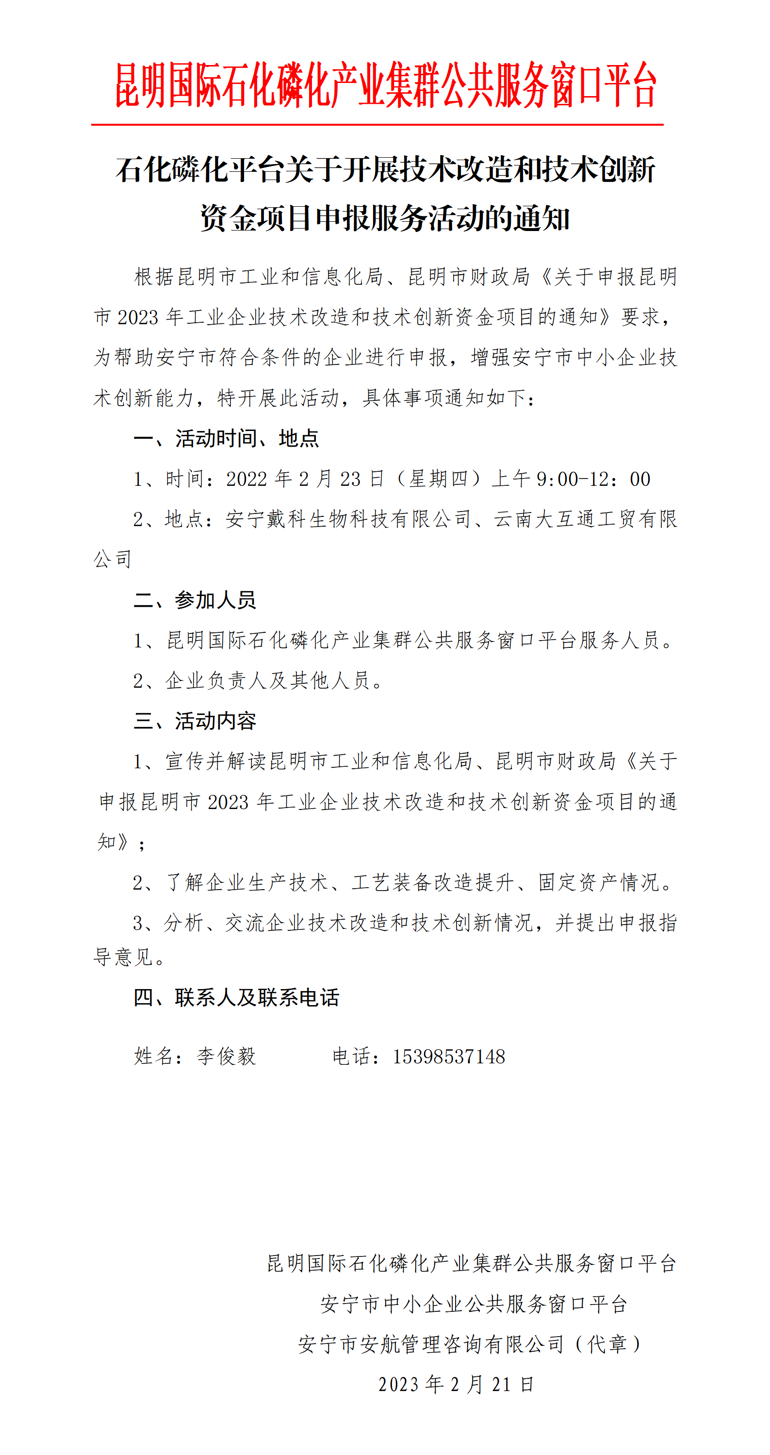 石化磷化平臺關(guān)于開展技術(shù)改造和技術(shù)創(chuàng)新 資金項目申報服務(wù)活動的通知