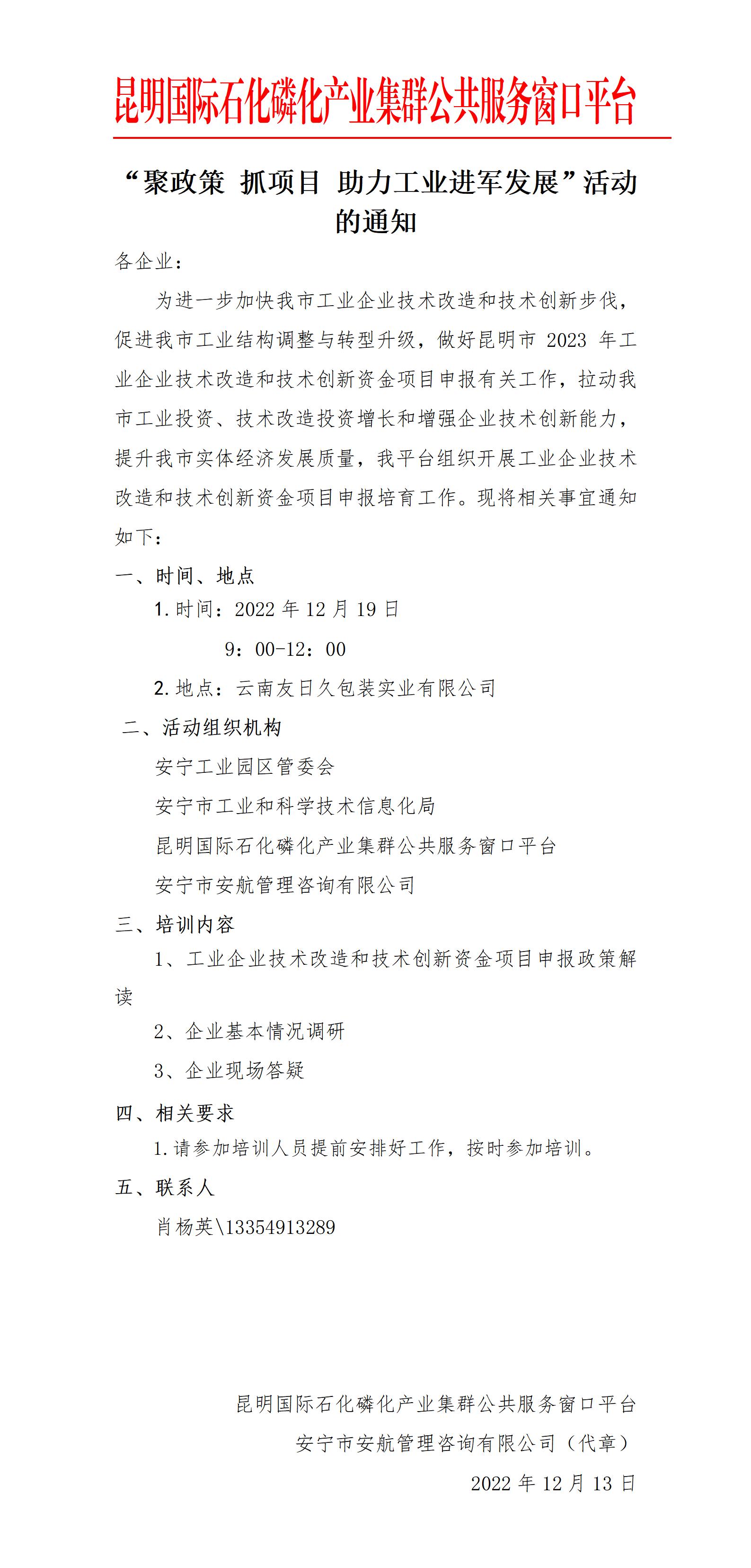 “聚政策 抓項目 助力工業(yè)進軍發(fā)展”活動的通知