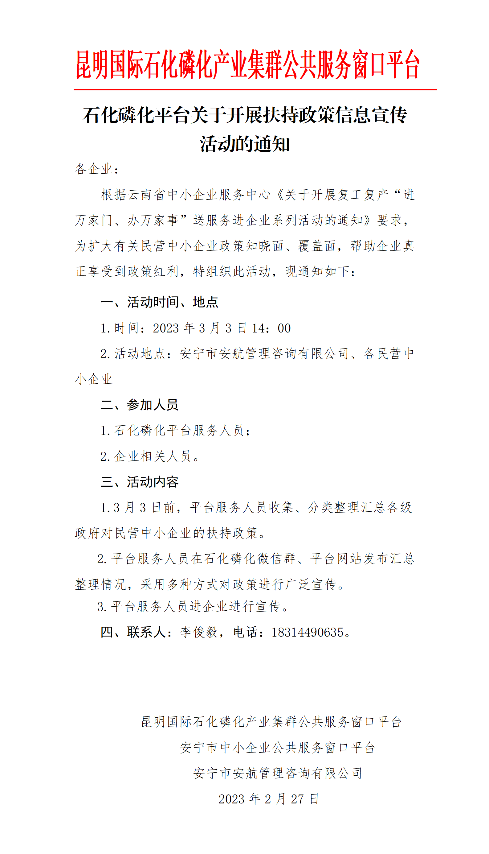 石化磷化平臺關(guān)于開展扶持政策信息宣傳 活動的通知