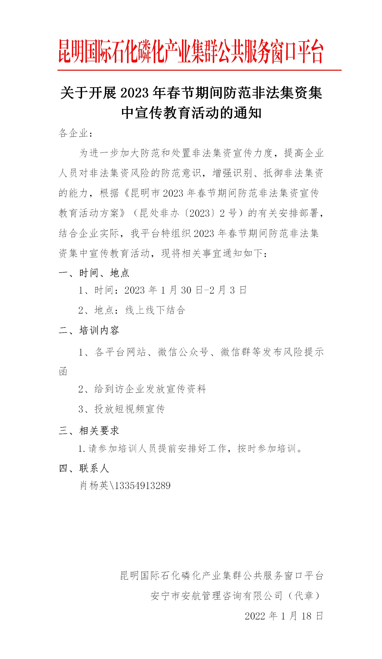 關(guān)于開展2023年春節(jié)期間防范非法集資集中宣傳教育活動的通知